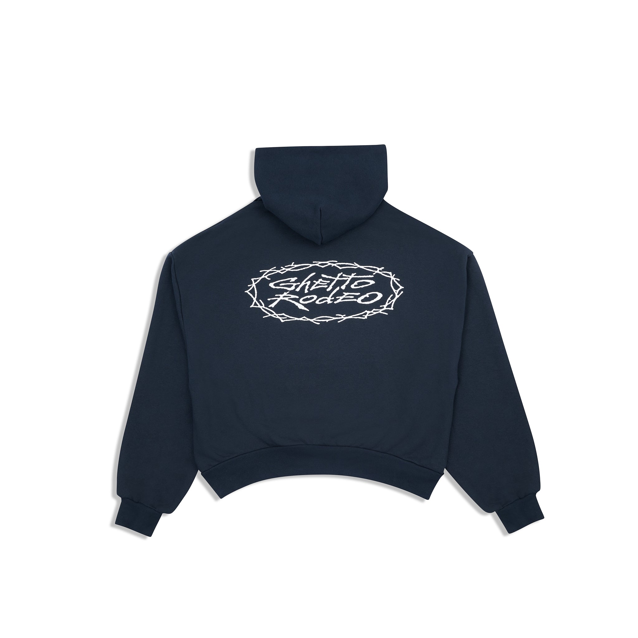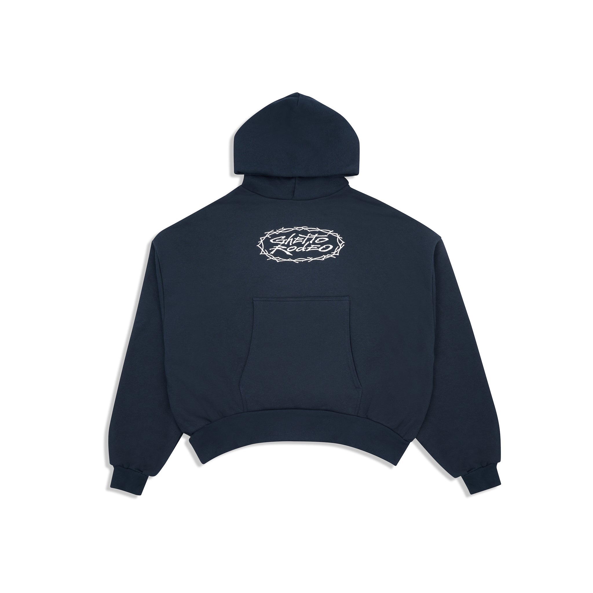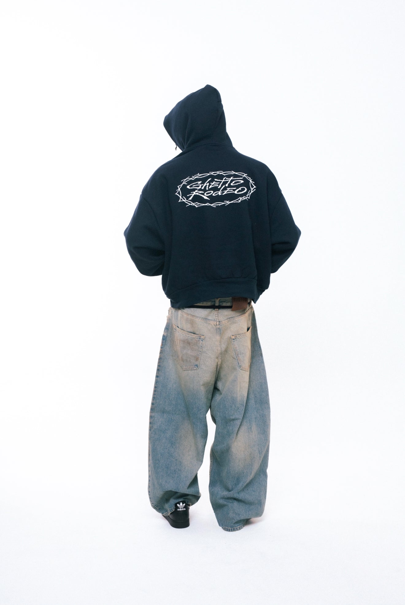Introducing the Ghetto Rodeo Box Hoodie, Featuring a wide boxy silhouette with a slight crop, baggy sleeves and finished with screen printed artwork.