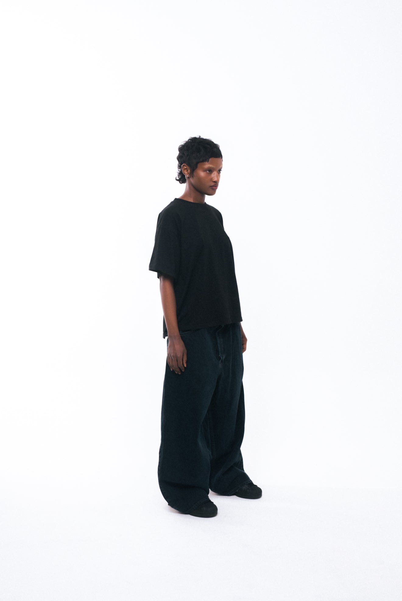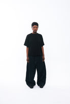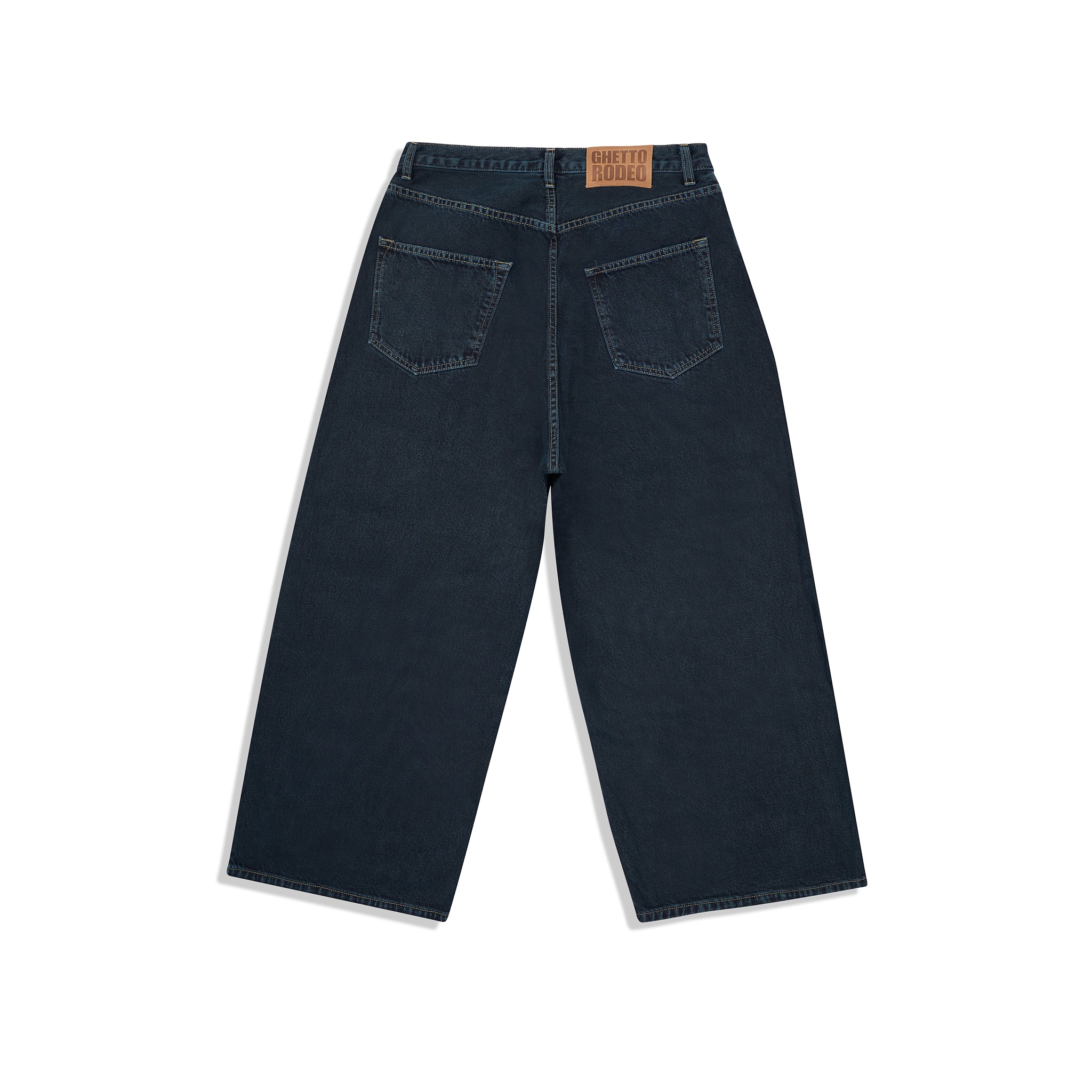 Introducing the Ghetto Rodeo Denim - Designed, cut, and sewn in the heart of Los Angeles, this wide-legged, drop-crotch silhouette is treated with a black dye and finished with a stone wash to give the panted a faded appearance.