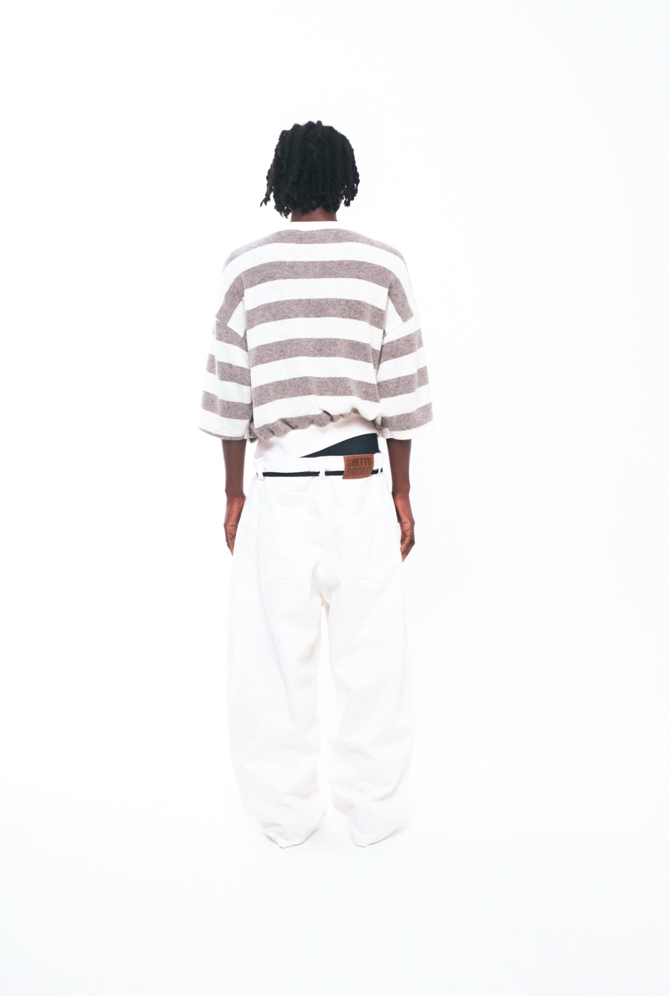 Introducing the Ghetto Rodeo Denim - Designed, cut, and sewn in the heart of Los Angeles, featuring a wide-legged, drop-crotch silhouette.